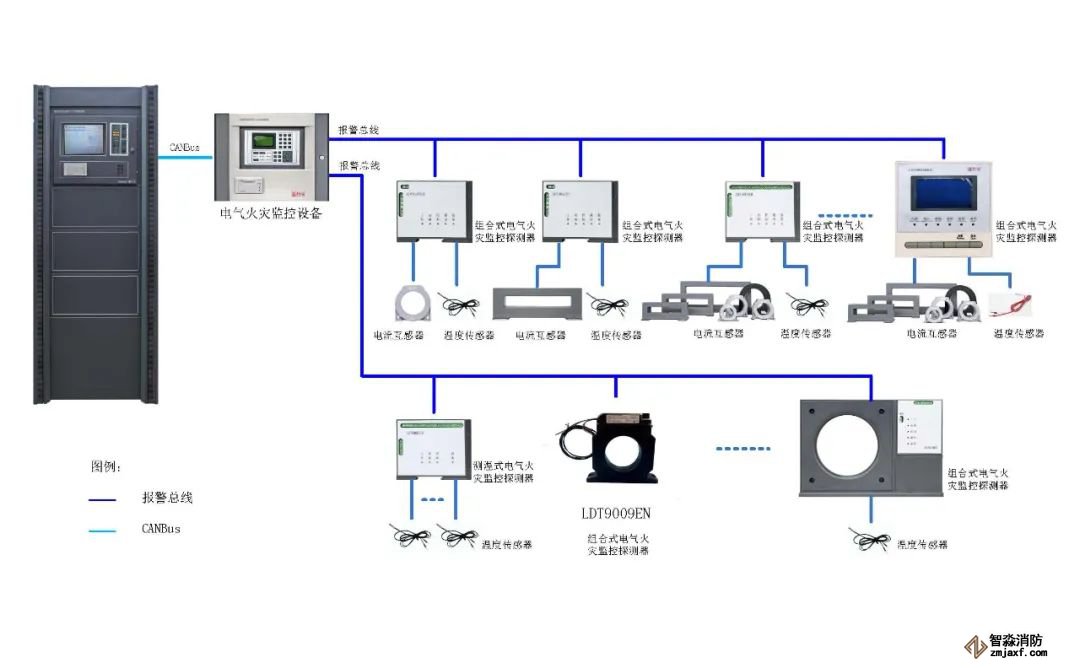 上述几种方式的错误接线都会导致电气火灾探测器报警,正确的使用方法如下图所示: