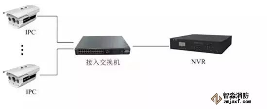 针对于1-8个点的小型工程,可以直接采用普通百兆交换机实现网络环境搭建。假如采用200万像素IPC,码流以6Mbps计算,8台摄像机占用带宽为8*6=48M,而百兆交换机实际使用率为50%-70%,即50-70M,完全可以满足8台IPC的传输要求。