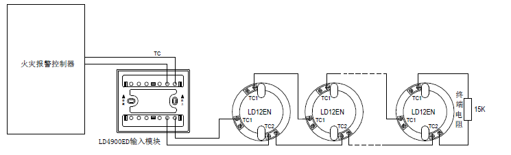 四、利达JTY-GF-LD3000E(F)点型光电感烟火灾探测器(非编码)接线示意图